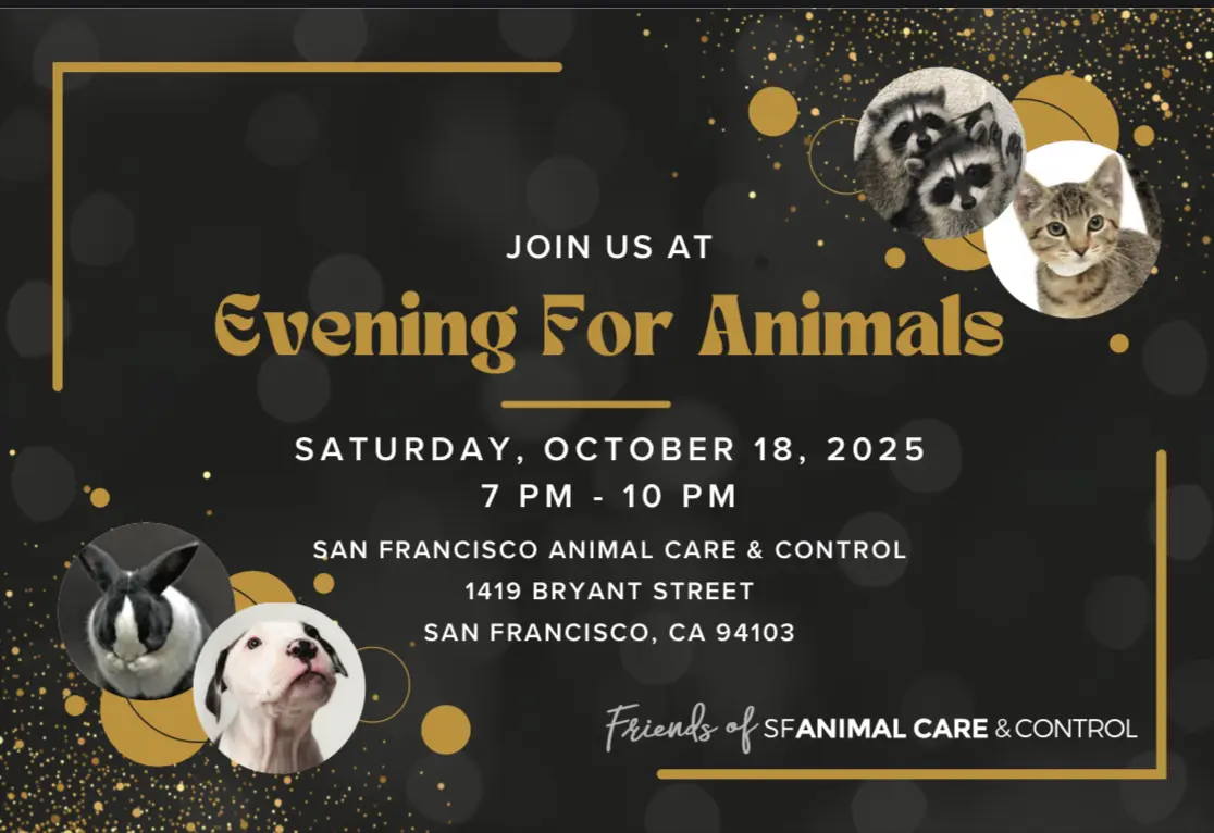 Evening for AnimalsJoin Friends of San Francisco Animal Care and Control (FSFACC) at the first-ever Evening for Animals on Saturday, October 18, 2025, from 7–10 PM on the rooftop at San Francisco…