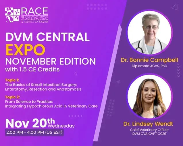 DVM Central Expo November Edition on Dog & Cat Intestinal Blockage SurgeryDate: November 20, 2024 Time: 2:00 PM – 4:00 PM (US Eastern Time) Platform: Zoom Join DVM Central’s November Expo! This event will cover critical…